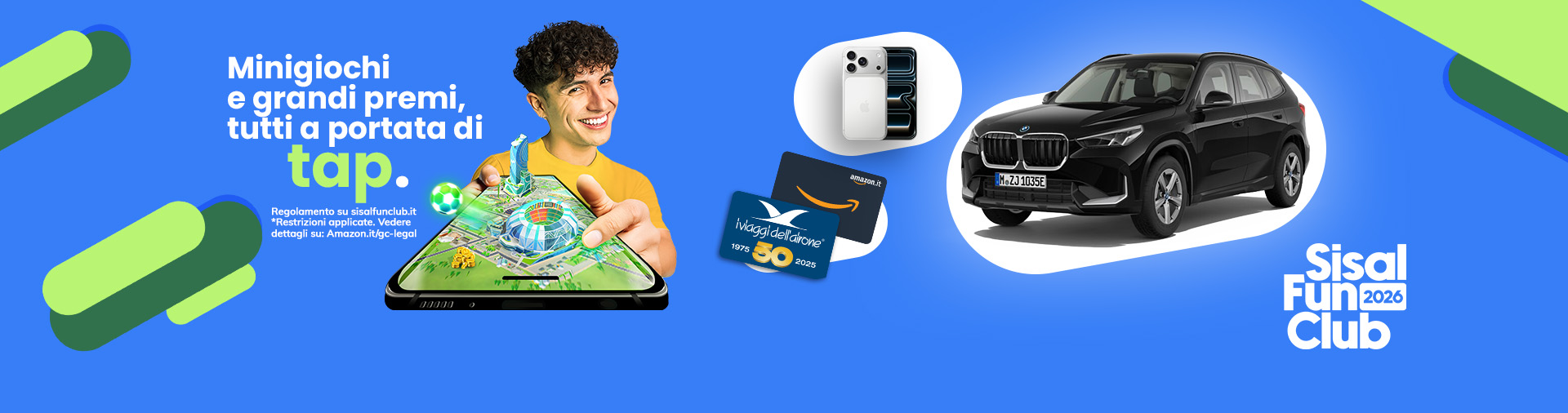 Accedere all’offerta di gioco di Sisal è semplicissimo: tutto quello che devi fare è registrarti sul sito seguendo le indicazioni del form e inserire correttamente tutti i dati richiesti oppure, se preferisci, puoi utilizzare direttamente il servizio di registrazione tramite Spid: l'inserimento dei tuoi dati è automatico e basta un solo minuto per registrarti! Non appena effettuata la registrazione al sito devi effettuare una prima ricarica sul conto e puoi iniziare a divertirti con tutti i tuoi giochi preferiti! Ricorda però che il gioco online è vietato ai minori di 18 anni e che per divertirti sul portale di Sisal.it devi essere maggiorenne.