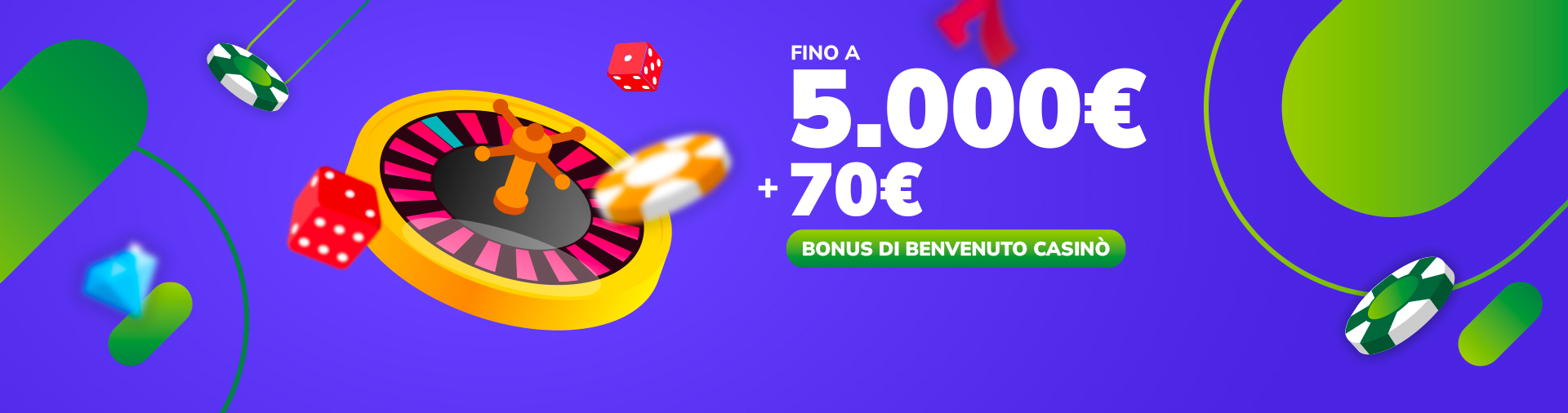 Nel nostro Casino online trovi tutto quello che cerchi in un vero casinò: oltre 600 slot machine, tavoli di blackjack e di roulette anche in una versione live in cui puoi interagire con i croupier e con gli altri giocatori della partita. Per te, inoltre, numerosi Bonus e promozioni di gioco per consentirti di giocare alle Slot anche gratis e non solo con soldi veri.