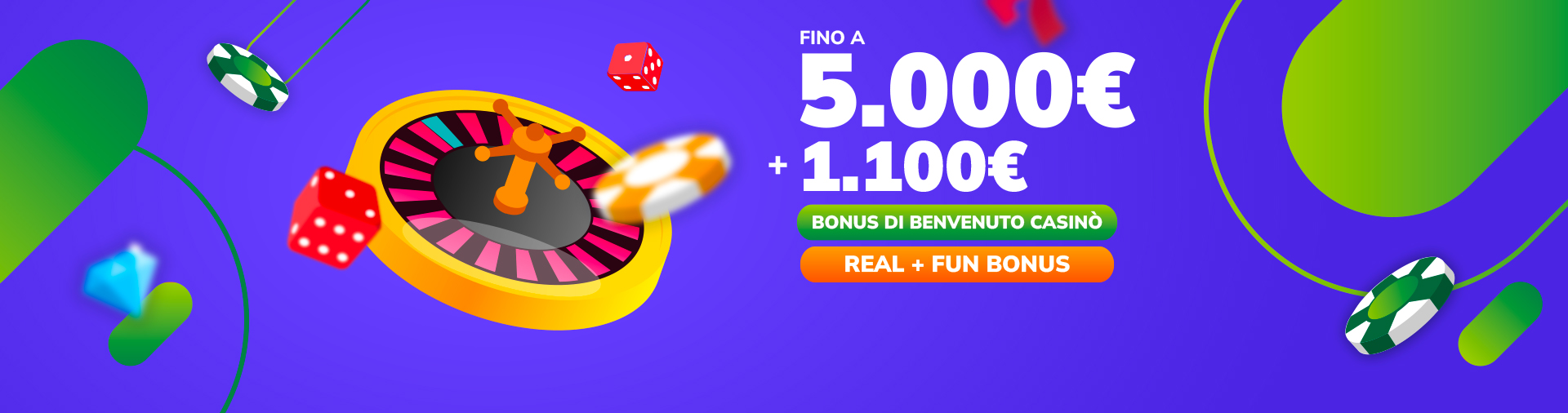 Nel nostro Casino online trovi tutto quello che cerchi in un vero casinò: oltre 600 slot machine, tavoli di blackjack e di roulette anche in una versione live in cui puoi interagire con i croupier e con gli altri giocatori della partita. Per te, inoltre, numerosi Bonus e promozioni di gioco per consentirti di giocare alle Slot anche gratis e non solo con soldi veri.