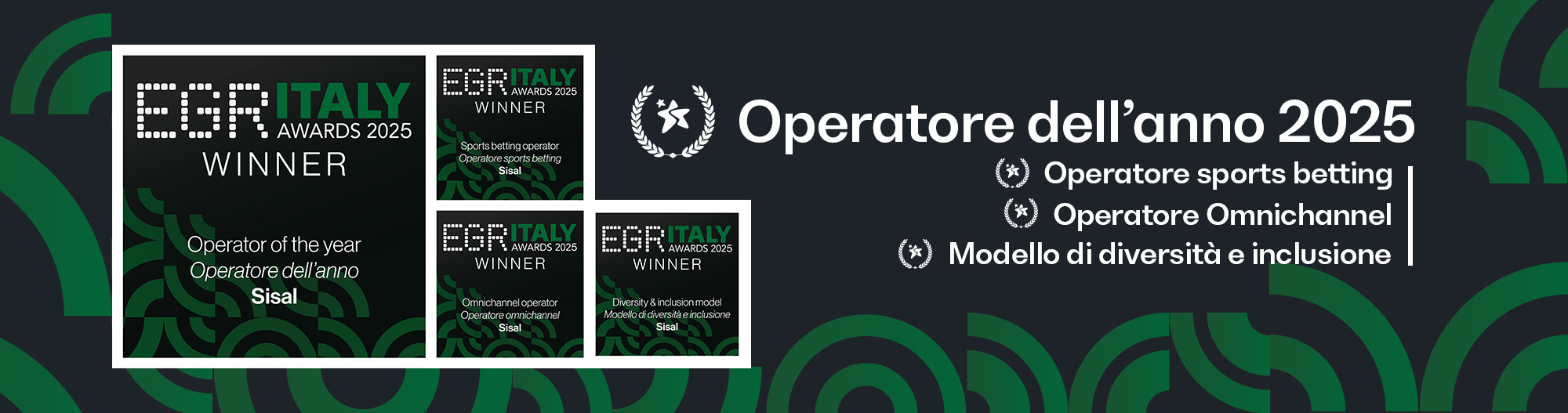 Gli EGR Italy Awards premiano ogni anno gli operatori di gioco online più innovativi, creativi e performanti. Anche nell’undicesima edizione, Sisal si è confermata protagonista, conquistando quattro prestigiosi riconoscimenti: Miglior operatore dell'anno, Miglior modello Diversity & Inclusion, Miglior operatore scommesse sportive e Miglior operatore omnichannel.